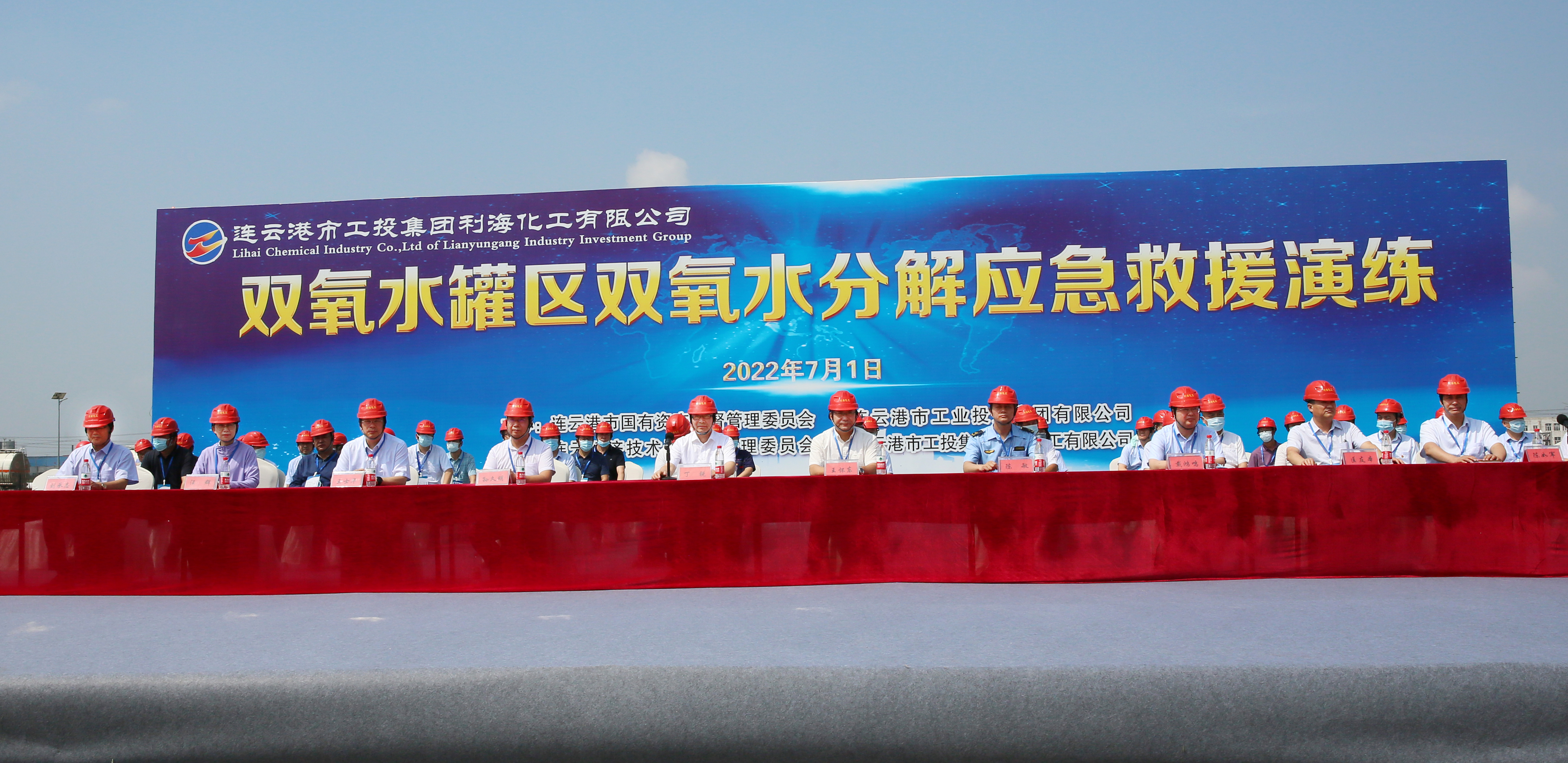 演練模擬利海化工公司雙氧水成品罐區V0402A儲罐內雙氧水分解,罐體升溫,可能發生爆炸事故,根據應急預案開展應急救援處置演練。經現場處置、啟動公司應急預案、專業救援力量響應等程序,演練取得了圓滿成功。