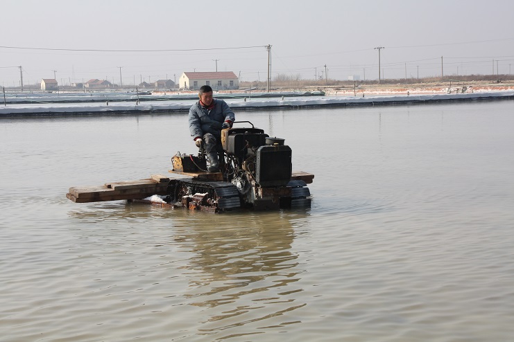 日前,筆者在走訪日曬制鹽公司時看到,在埒南制鹽分公司七班的鹽池內,一臺“唐三零”扒鹽機正在進行扒鹽工作,池埝上機泵運作時的轟鳴聲回蕩在鹽灘上,標志著日曬制鹽公司今年的春扒戰役正式打響。