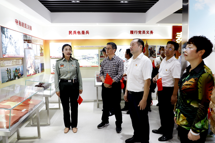 上午9點10分,隨著百名人員的陸續登島,往日寧靜的開山島突然熱鬧起來,紅旗飄舞,歌聲飛揚。沿著山梯而上,重走全國“人民楷模”、“最美奮斗者”、優秀共產黨員王繼才同志生前的巡島路線,追尋英模足跡;參觀“開山島夫妻哨所事跡展示館”,瞭望臺、生活間和營房,實地感受王繼才夫婦在環境異常惡劣的開山島上,以島為家、與海為鄰,舍家為國、不畏艱險,32年如一日堅守海防事業的奉獻精神;在開山島最高處的國旗廣場上,黨員們一起觀看守島民兵升國旗,組織開展重溫入黨誓詞儀式,教育引導全體黨員不忘初心,牢記使命。